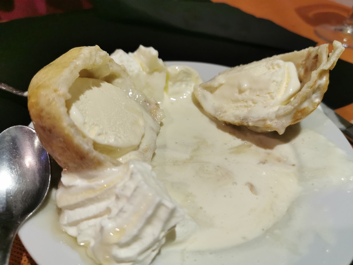 Rice lovers are well taken care of with the Arroz Fusión Especial, a comforting yet vibrant dish that works perfectly as a main course or to share. The kitchen also pays close attention to starters, with Wantan served crisp and flavorful, making them an ideal way to begin the meal. To finish on a memorable note, the Helado Frito adds a playful contrast of hot and cold, light and indulgent, leaving a lasting impression long after the last bite.